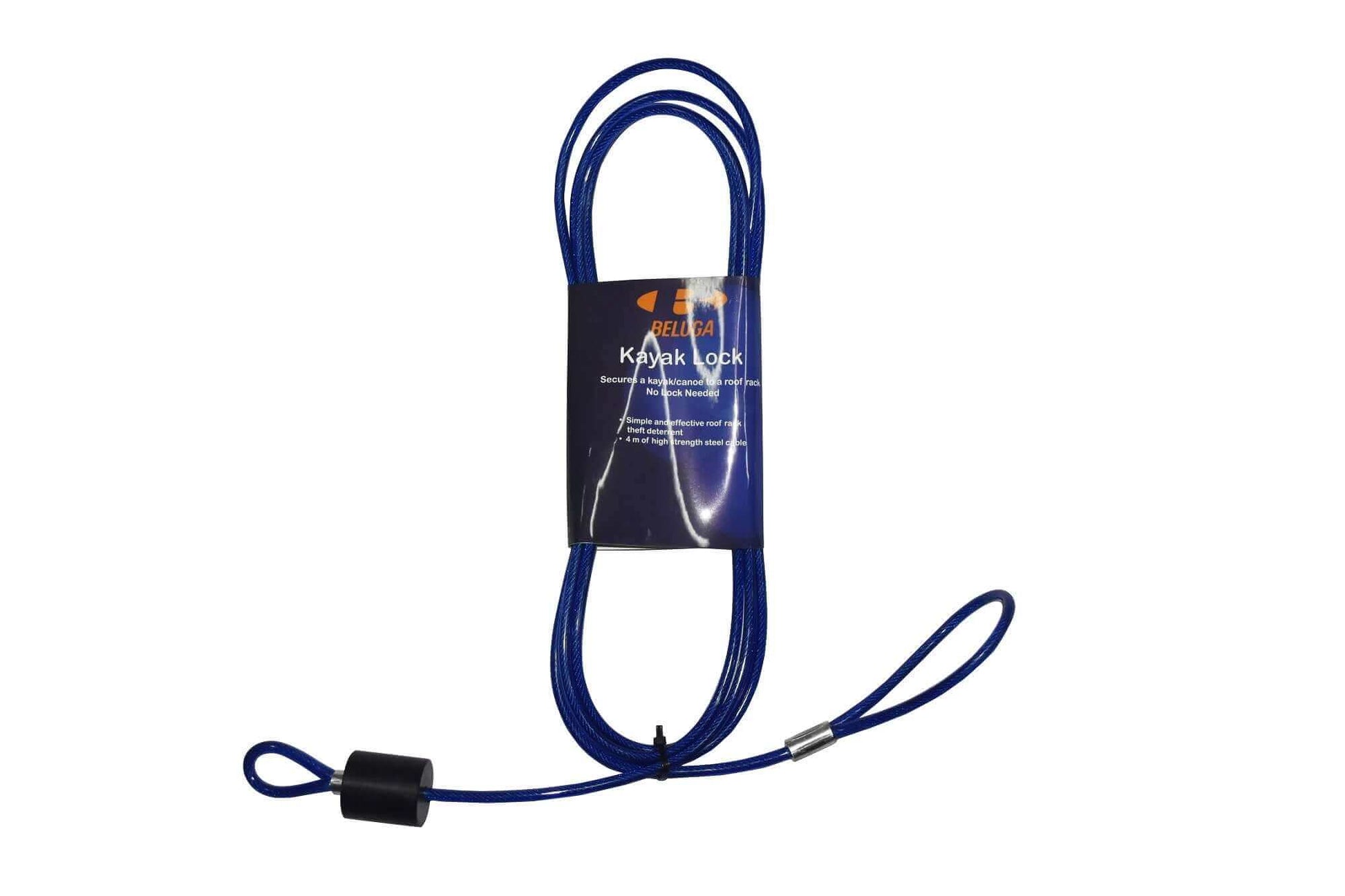 Secures your kayak or canoe to your vehicle. Simply put the loop end through a secure place on your canoe/kayak, wrap around your locked roof rack. Then put the ball end through the loop and pull the thing tight. Then either open your trunk or door and carefully put the ball inside your vehicle, finally close trunk or door and lock your vehicle. A determined thief will have tools to remove the cable, but the Kayak Lock is the best deterrent for the opportunist thief.