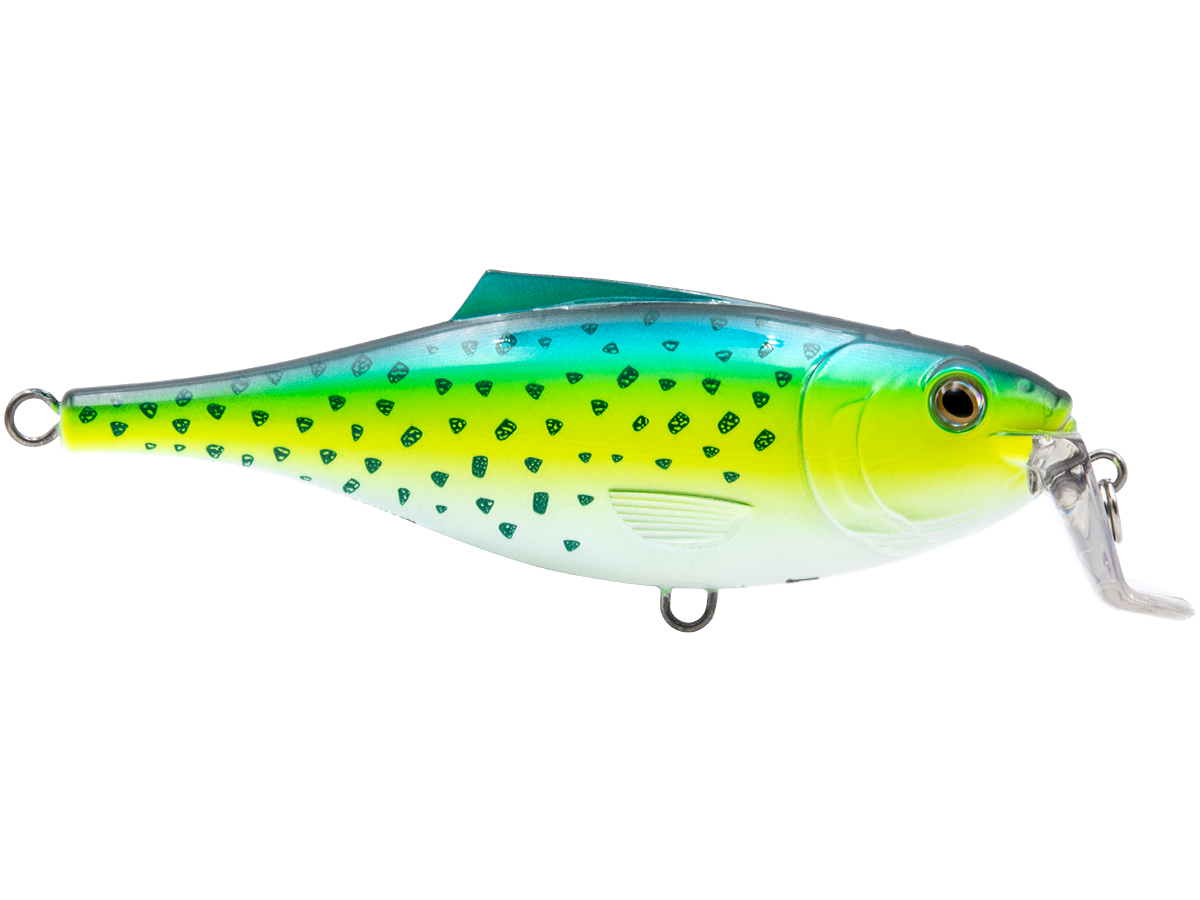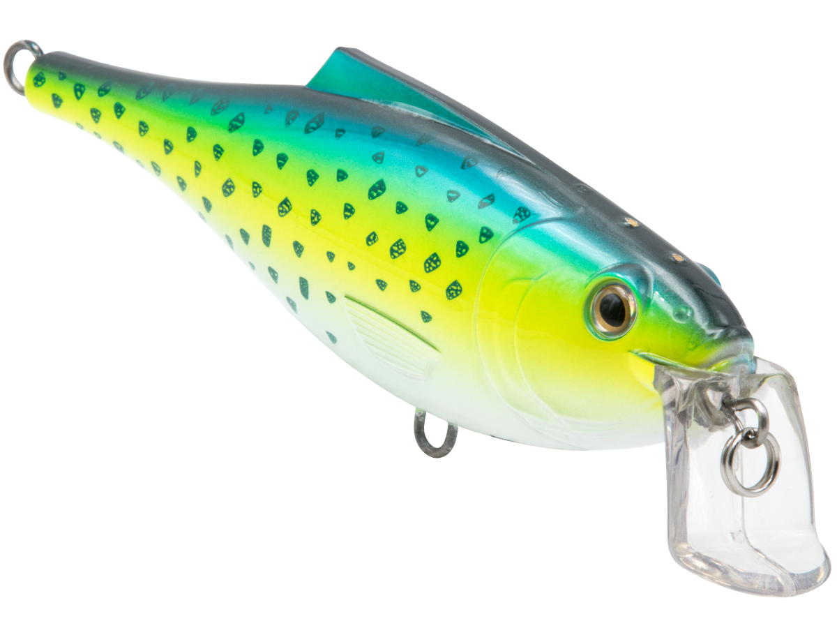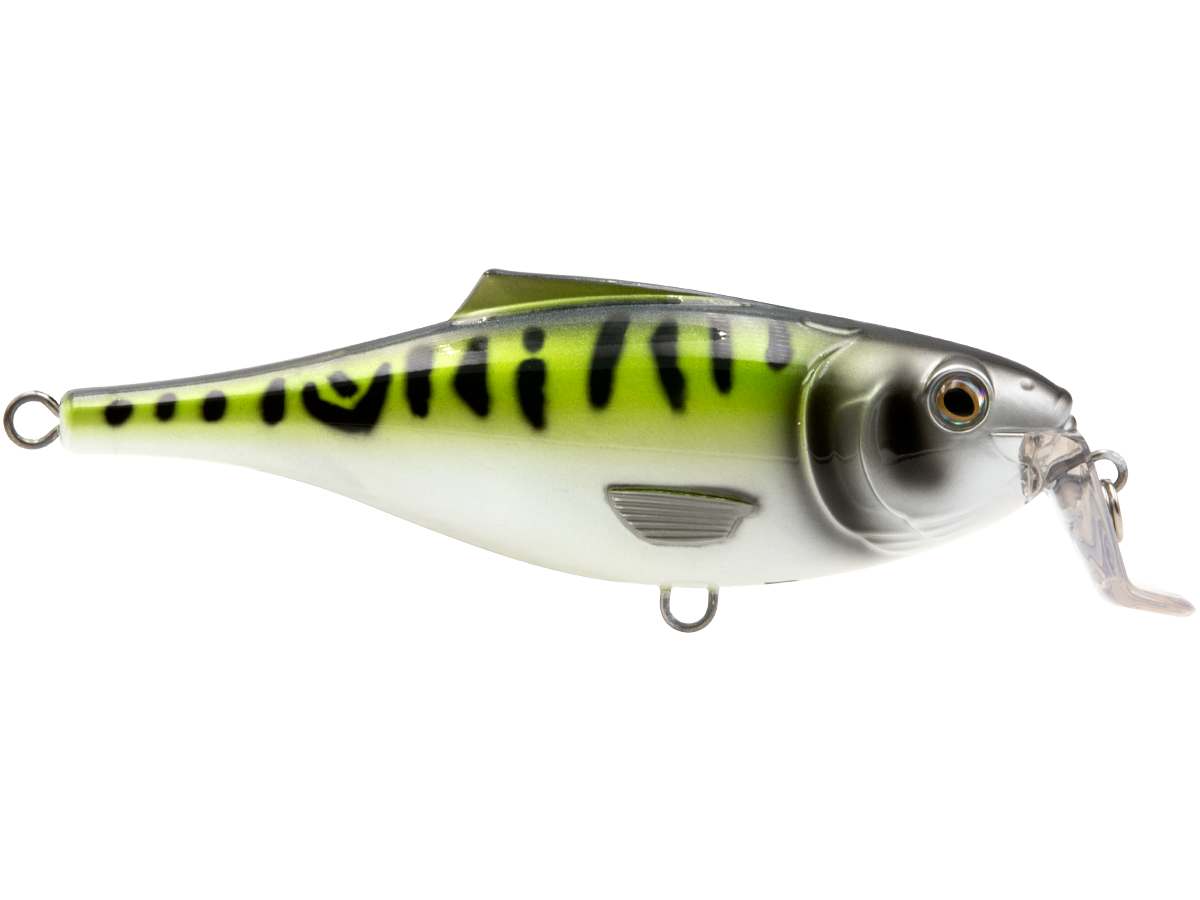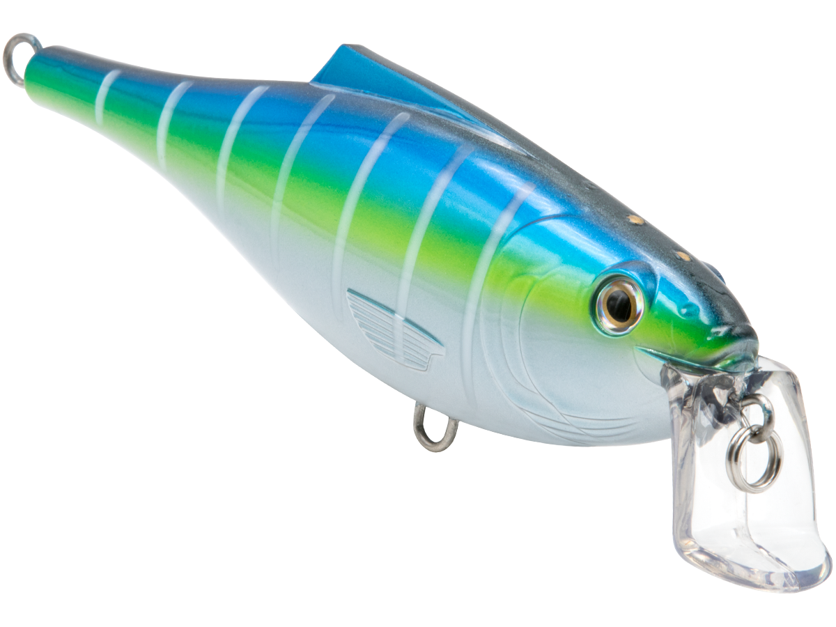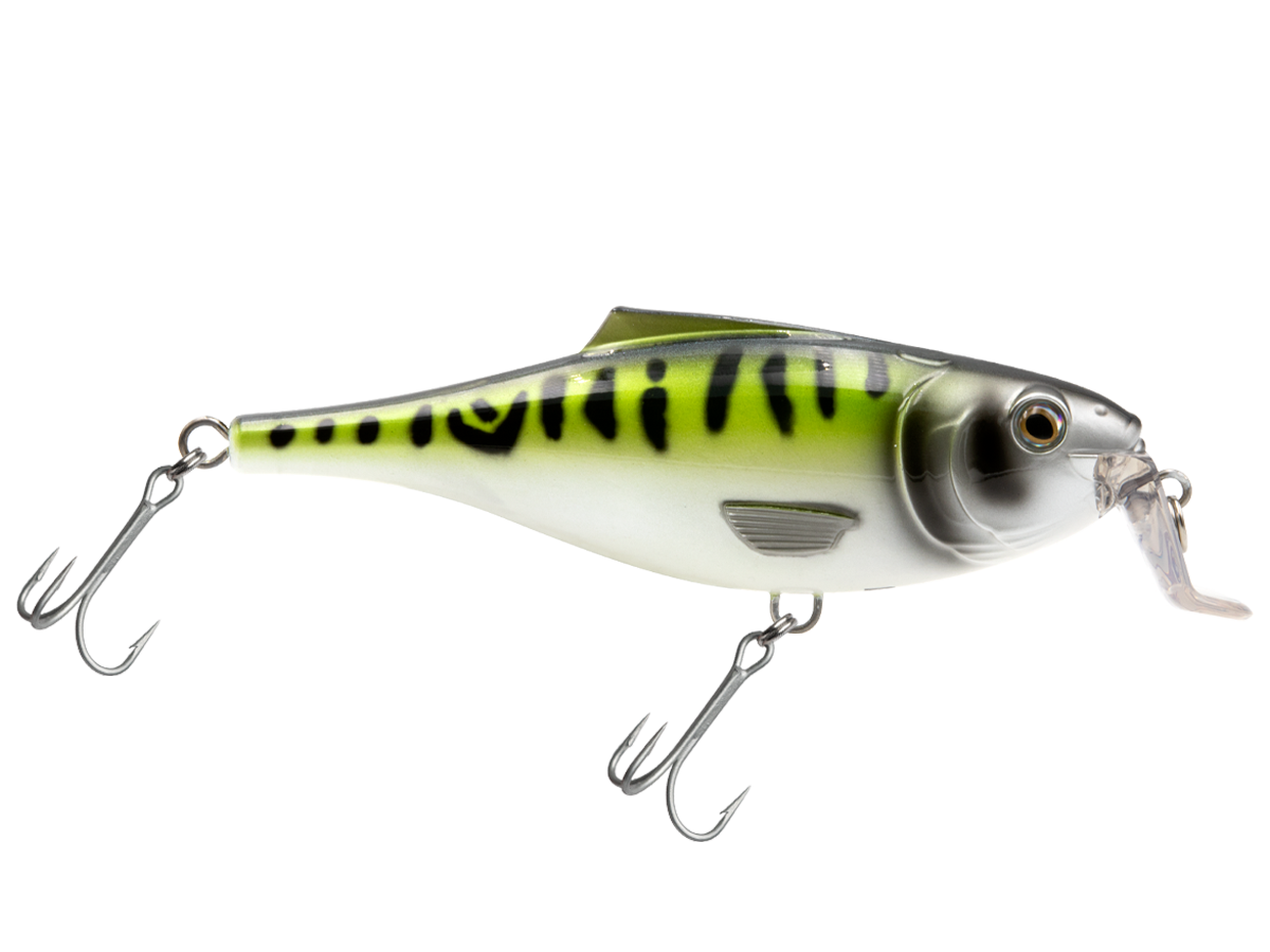 The BULLDOZER SW gets its name from a unique lip design and action, which combines with its 5 3/4-inch baitfish profile to create one of the most effective shallow divers (4 to 6 feet) ever produced for trolling or casting. This lure's tight wobble and kick-out/darting action are made even more effective with the addition of EBS Technology. When the Bulldozer hits the water, EBS becomes active, emitting the sound of an actual baitfish. This "Fish Catching Machine" not only looks and swims like baitfish but sounds like it too, as fish are drawn from double the distance in comparison to traditional lures. The Bulldozer is built with a 2mm wire-through construction.