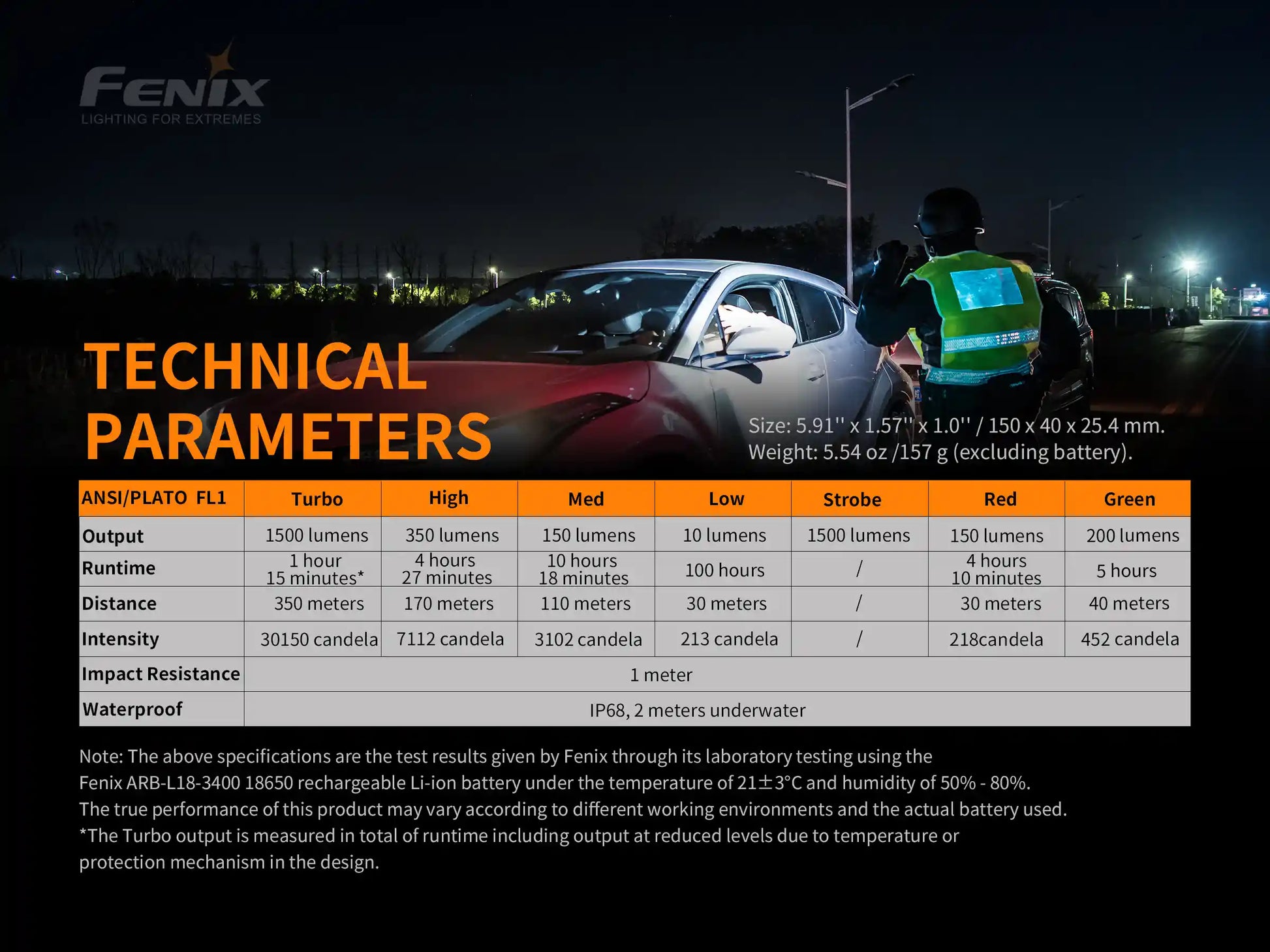 Fenix leads the industry in tactical flashlight solutions that are trusted by law enforcement personnel worldwide and the TK26R Tactical flashlight has been designed with officers in mind (although it's a great light for other tactical users as well as fishermen and hunters). It offers 1500 lumens of white light, 200 Lumens of green light, and 150 lumens of red light, and is powered by one 18650 rechargeable battery (included) or two CR123 batteries (not included). The 18650 can be conveniently charged within the flashlight using the included USB Type-C cable. Plus, the TK26R is designed for optimal performance in tough conditions, featuring an IP68 rating, superior temperature tolerance, and a durable A6061-T6 aluminum body.