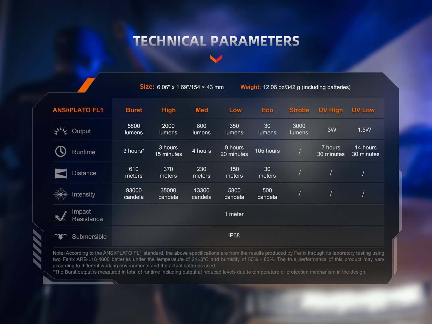 - Max Output: 5,800 lumens (Burst)