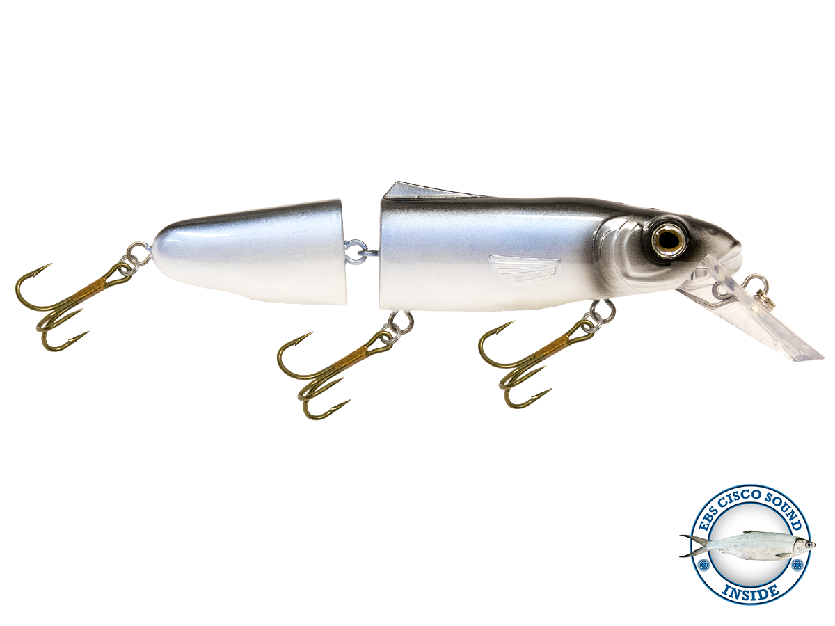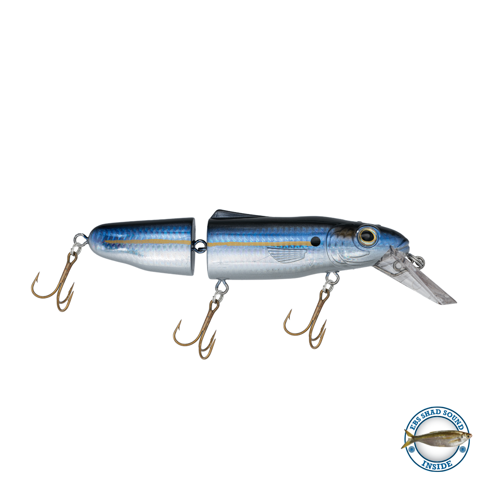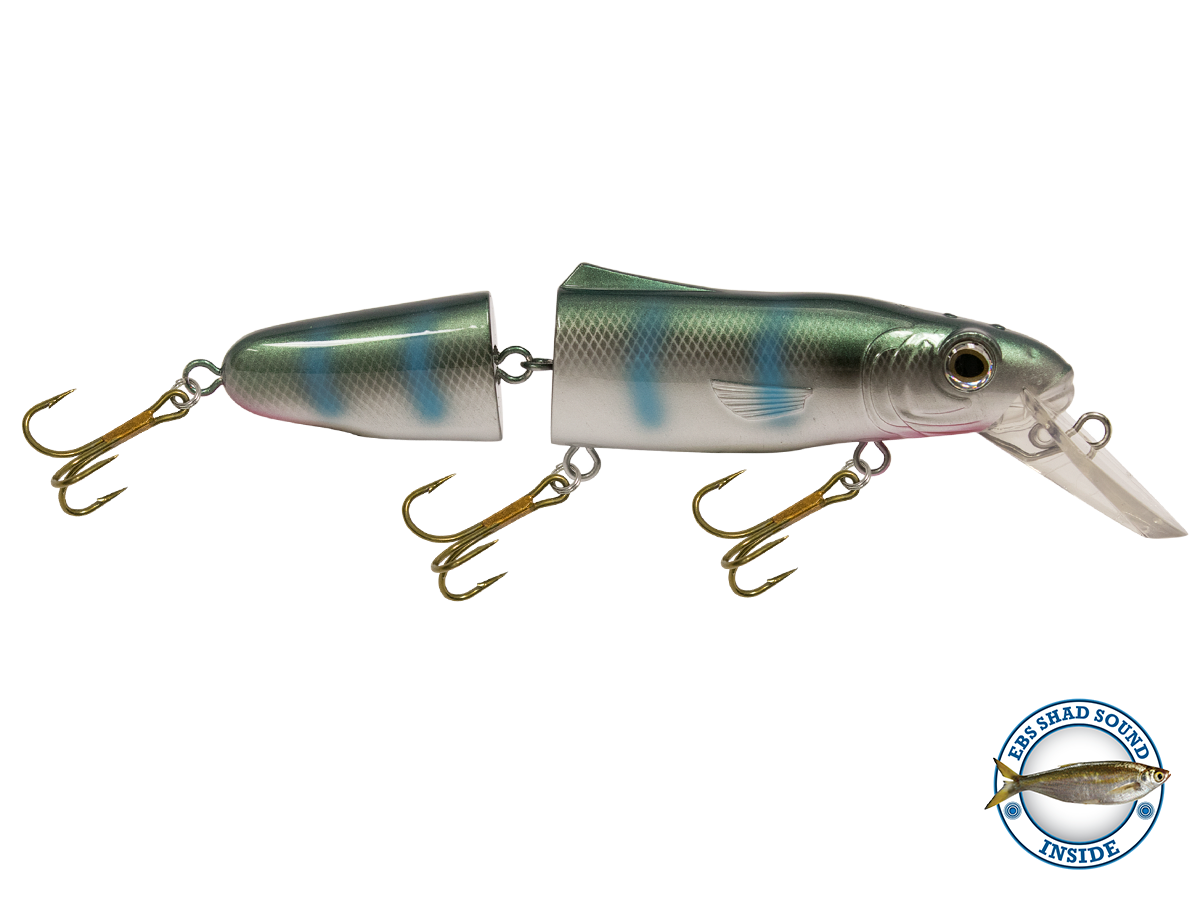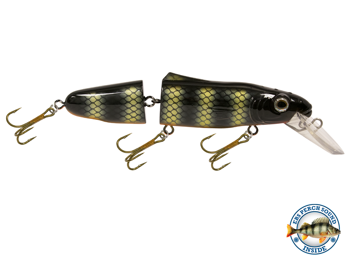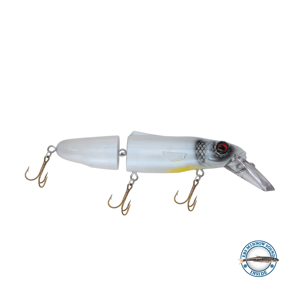 The Pounder has a realistic wobble and gets extra thump from it's jointed body making it a standout lure for giant musky, pike, tiger muskie and striped bass.