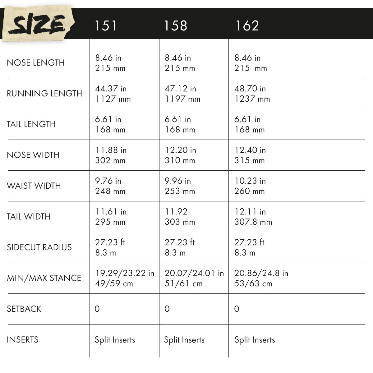 LANDING STRIP, PROGRESSIVE SIDECUT: Strips of Kevlar and carbon fiber placed from the inserts to the tips in the nose and tail to support landings and reduce washouts. This design also helps dampen high-speed chatter, offer stability at speed and load up potent ollies. The progressive sidecut design blends many radii and smooth contact points for buttery smooth turn initiation, edge-to-edge transition and edge hold. Identity shape saves material and weight and also stands up without tipping over like rounded boards do.