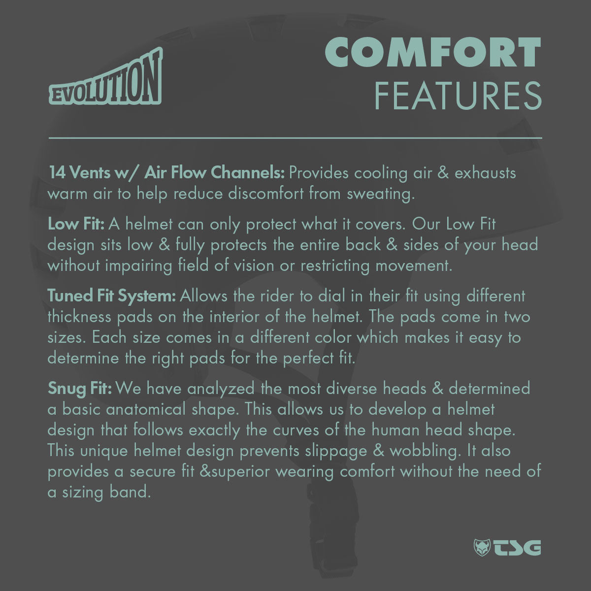 - LOW FIT: A helmet can only protect what it covers. TSG's Low Fit design sits low and fully protects the entire back and sides of your head without impairing field of vision or restricting movement.