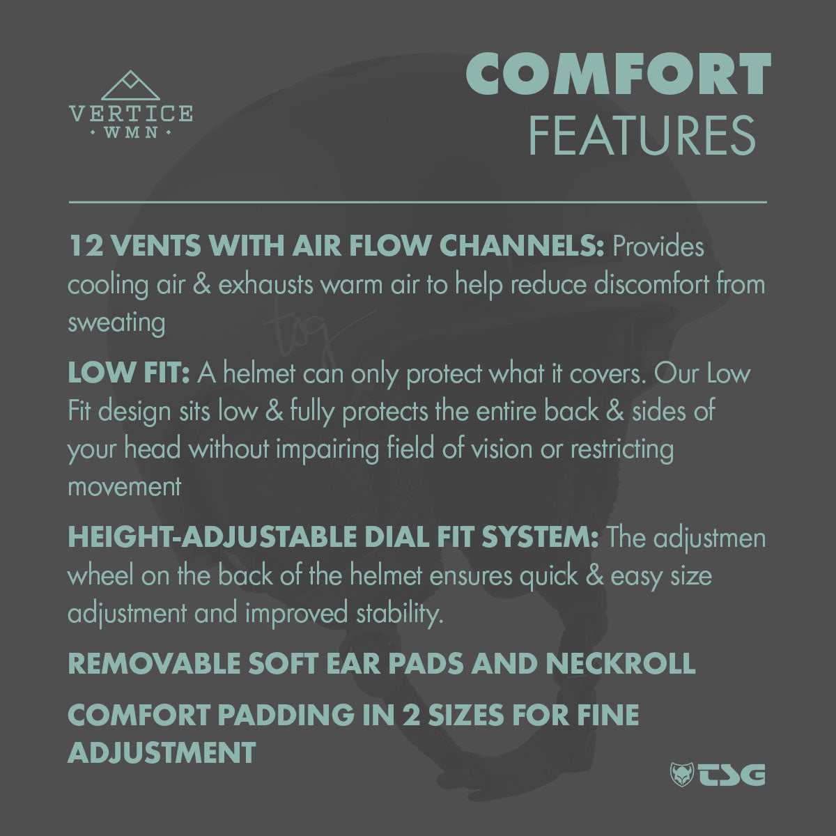 CUSTOMIZABLE DIAL FIT & LOW FIT: The Dial-Fit System makes it easy to dial in a custom fit in seconds. An adjustment wheel on the back of the helmet ensures size adjustment and increases stability for helmets. Low fit design sits low and protects the entire back and sides of your head without impairing vision or restricting movement. Goes well with TSG Goggle One, Goggle Two and Goggle Fours.