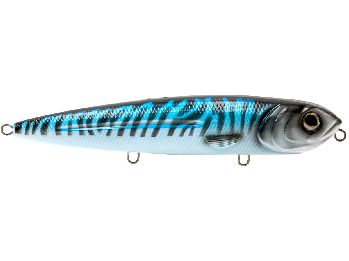 The 8-inch WALKING BOSS MAGNUM is the new pinnacle for saltwater walking baits. Enhanced with the power of EBS Technology and designed to produce an irresistible side-to-side topwater commotion, the Walking Boss Magnum is a can't-miss for Dorado, cubera, wahoo, and Tuna, to name a few. The bait's elongated body produces a flash walk-the-dog action, while EBS reaches out to saltwater predators at double the distance of traditional lures! Add sturdy 2mm wire-through construction and premium hooks, and you have a topwater lure that's built to withstand the abuse of the multiple fish it attracts.